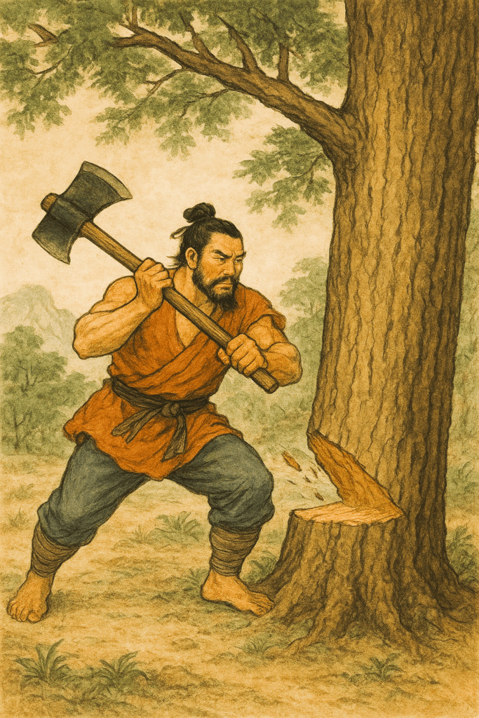 Le Huainanzi (淮南子), ouvrage de la dynastie Han occidentale (206 av. J.-C. - 9 ap. J.-C.) compilé par Liu An (刘安), mentionne : « Il y a un osmanthus sur la lune ». Plus tard, sous la dynastie Tang (618-907), Duan Chengshi (段成式) écrivit dans son Youyang zazu (酉阳杂俎, Recueil d’histoires étranges et de légendes) : « Les anciens disaient que sur la lune se trouvent un osmanthus et un crapaud. Dans les livres étranges, il est dit que l’osmanthus lunaire mesure cinq cents zhang de haut, et qu’en dessous se tient un homme qui l’abat sans cesse, mais l’arbre se referme aussitôt. Cet homme s’appelle Wu Gang (吴刚), originaire de Xihe sous les Han. Ayant commis une faute dans son apprentissage de l’immortalité, il fut condamné par l’Empereur de Jade à une punition éternelle : abattre un arbre qui se referme aussitôt après chaque coup de hache, rendant sa tâche impossible à accomplir. » Tel le Sisyphe de la mythologie grecque condamné à pousser éternellement son rocher, Wu Gang ne pourra jamais quitter la lune.